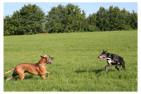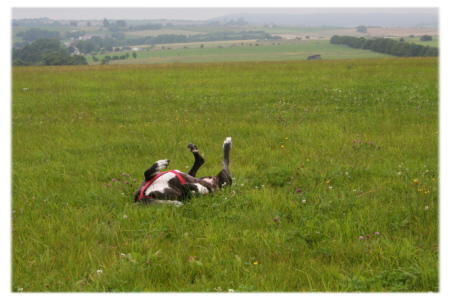 Heute konnte Quattro wieder einmal wieder richtig toben, denn früh am Morgen trafen wir uns mit Christine und Bruno. Als Quattro seinen Freund entdeckte, gab es kein Halten mehr und vergnügt flitzten die beiden über die Wiesen. Es ist immer wieder beeindruckend, zwei solche Kraftpakete beim Spiel zu beobachten.