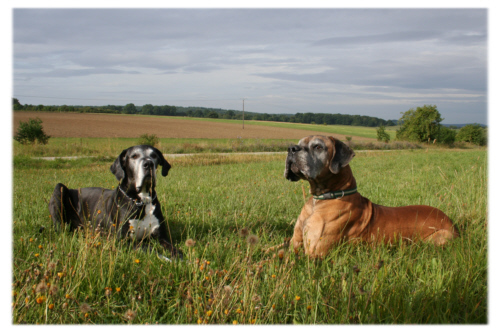 Und auch die Rudelchefin des Kruserudels, Baidschi Semper Fidelis, ist vor wenigen Tagen in den Armen von Annette eingeschlafen. Baidschi erreichte mit über 11 Jahren ein außergewöhnlich hohes Alter für eine Dogge. Doch das machte den Abschied für ihre Lieben nicht leichter. |