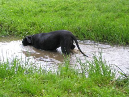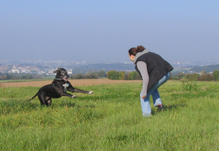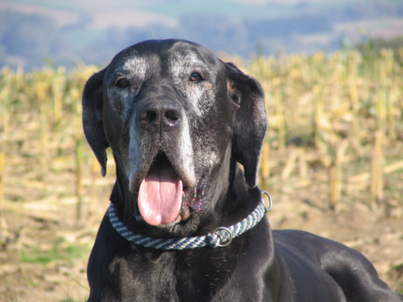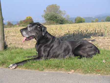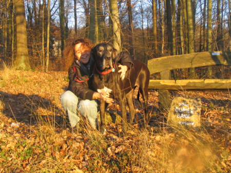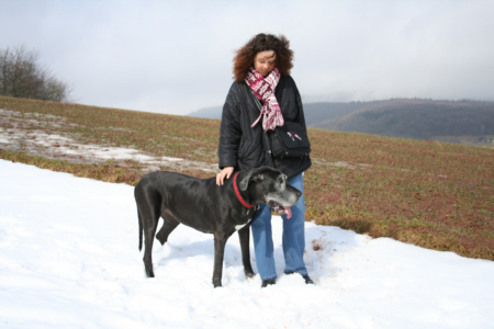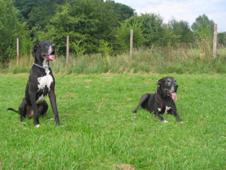 Ein Zufall hat im Sommer 2004 dazu geführt, dass ich Alexandra und ihre Dogge Elly kennengelernt habe: Ich ersteigerte einige Doggenzeitschriften im Internet, die von Alexandra verkauft wurden. Sie berichtete mir von ihrer damals siebenjährigen Hündin, und ich wiederum erzählte von Lava und Quattro. Wie sich herausstellte, wohnten wir nur etwa 80 km voneinander entfernt. Und so kam es, dass wir uns im Juni 2004 zu einem gemeinsamen Spaziergang mit unseren Hunden verabredeten. Da sich die Hunde und auch wir uns auf Anhieb sehr gut verstanden, blieb es nicht bei diesem einen Ausflug.