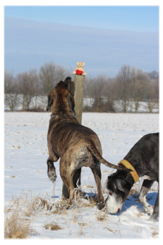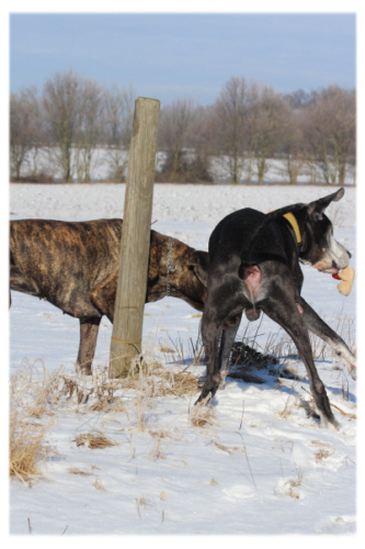 Nachdem ich dieser Tage jedoch zufällig auf einen Artikel über die Perinealhernie, den sogenannten Dammbruch, gestossen bin, beschlich mich gleich ein ungutes Gefühl. Wir haben Quattro daraufhin von Dr. Weber rektal untersuchen lassen, der meinen Verdacht bestätigte: Quattro hat eine Perinealhernie. Hierbei handelt es sich um einen Bruch im Bereich der Muskulatur, die den Enddarm seitlich stützt. Es kommt zu einer einseitigen Ausbuchtung des Enddarms, daher auch die bei Quattro deutlich sichtbare Wölbung. Die einzige Behandlungsmethode einer solchen Hernie ist ein chirurgischer Eingriff und dieser sollte in der Regel so schnell wie möglich erfolgen, denn je länger der Bruch besteht, desto komplizierter und riskanter wird die Operation für den Patienten. Bei Quattro wäre der optimale Zeitpunkt für eine solche Operation vor 2 Jahren gewesen. Die Gefahr bei einem unbehandelten Bruch besteht in einem möglichen Einklemmen von Darmschlingen.