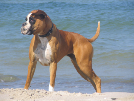 Da die Badesaison noch nicht begonnen hatte und die Anzahl der Touristen noch überschaubar war, mussten wir uns nicht nur auf den Hundestrand beschränken, sondern konnten auch die anderen Strandabschnitte für Spaziergänge nutzen, wo wir auch andere Hundefreunde trafen. Und so lernte Quattro an einem sonnigen Vormittag Lilu kennen, eine zweijährige Boxerhündin, mit der er nach Herzenslust spielen konnte.