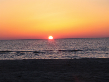 In den Abendstunden konnte man am Strand, der dann meist menschenleer war, malerische Sonnenuntergänge beobachten.