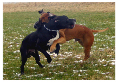 Quattro war heute wieder einmal gemeinsam mit Bruno unterwegs. Es war wie immer eine Freude, den beiden Rüden beim Spiel zuzuschauen. Obwohl Bruno Quattro an Kraft überlegen ist, gelingt es Quattro immer wieder, seine Stärke, die in seiner Schnelligkeit und Ausdauer liegt, so auszunutzen, dass er am Ende triumphiert. Auch für den Fall, dass es Bruno gelingt, Quattro zu Boden zu ringen, hat Quattro sich eine raffinierte Methode ausgedacht, die immer wieder Erfolg hat: Ein kurzer herzerweichender Schrei reicht, um Bruno, der seinen Freund nicht verletzten will, abzulenken. Und ehe sich Bruno versieht, steht Quattro wieder hinter ihm und zwickt ihn frech ins Bein, um ihn so zu einem neuen Spiel herauszufordern.