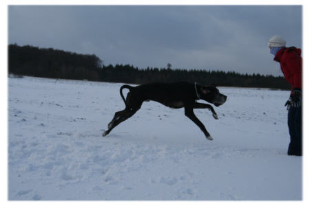 Heute trafen wir uns zum Neujahrsspaziergang mit Christine und Bruno. Wir hatten die beiden schon lange nicht gesehen, da Bruno sich bei einem Sturz das Bein verletzt hatte und sich über einen längeren Zeitraum schonen musste. Umso mehr freuten wir uns heute, ihn wieder vergnügt über die Wiesen rennen zu sehen.