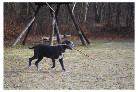 Findet sie ein Stöckchen nach Maß, blüht Lava richtig auf. Stolz wie Oskar trägt sie ihre Beute über die Wiese und spielt ausgelassen damit. Wenn man bedenkt, dass Lava nach ihrer Krankheit aufgrund der Lähmungserscheinungen keine Gegenstände greifen und halten konnte, staunt man einmal mehr, wie sie sich nach und nach wieder erholt hat.