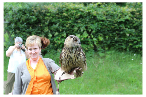Als Überraschung für unsere Gäste besuchte uns der Falkner der Greifenwarte am Rennstein, Elias Schubach, mit einigen seiner gefiederten Freunde. |