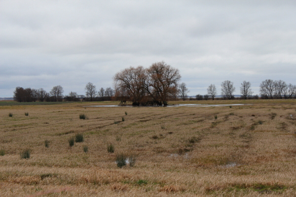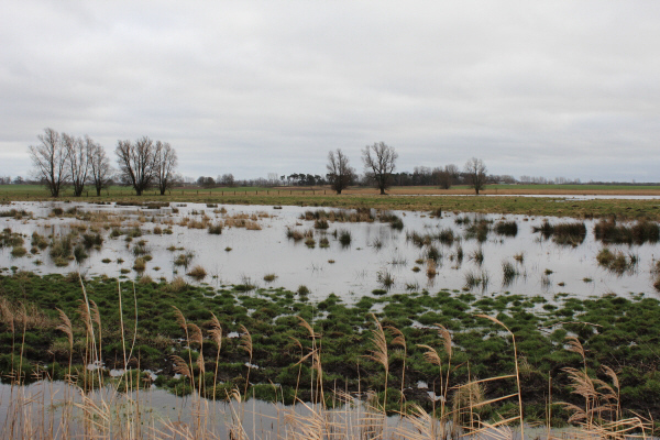 Dies ist kein See, sondern eine Wiese, auf der normalerweise Kühe weiden. |