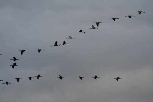Auf ihrem Weg zu ihrem Winterquartier machten auch in dieser Region wieder tausende Kraniche Rast. |