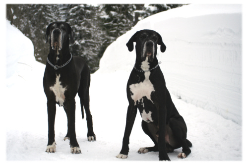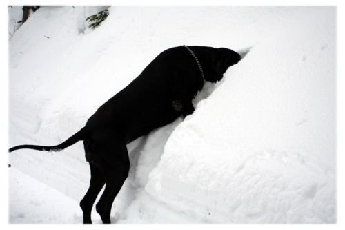 Lava und Quattro lieben es, im Schnee zu toben. Allerdings hatten wir nun so viel Schnee, dass es gar nicht so leicht war, den beiden den gewünschten Auslauf zu bieten. Der Schnee auf Wiesen und Wegen lag mittlerweile so hoch, dass man sie nicht mehr passieren konnte. Und da die Räumfahrzeuge vollauf damit beschäftigt waren, die Straßen und Zufahrten freizuhalten, waren die Wanderwege vielerorts nicht geräumt. |