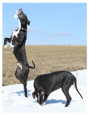 Zur Feier des Tages gab es heute einen großen Kalbsknochen zum Knabbern für Lava und Quattro. Ich kann dann darauf warten, dass die beiden nach einer Weile ihre Knochen “tauschen”. Dieses Ritual vollziehen die beiden jedesmal, und man hat dann das Gefühl der angenagte Knochen des anderen erfreut sie mehr als der eigene.