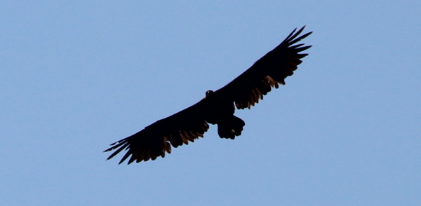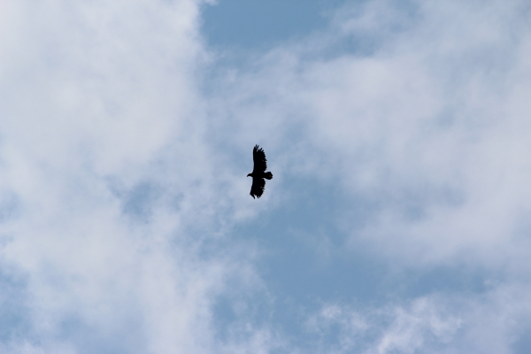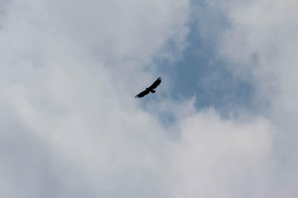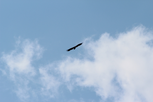 Aber da wir nun wußten, wo man die größten Chancen hat, Seeadler zu beobachten, radelten wir am nächsten Tag auf eigene Faust zum Rederangsee und warteten erneut. Und wieder warteten und warteten wir. Und obwohl ich die ganze Zeit mit dem Fernglas die Baumwipfel ringsum abgraste, habe ich ihn nicht kommen sehen. Plötzlich war er einfach da und kreiste mitten über dem See: der König der Lüfte. |