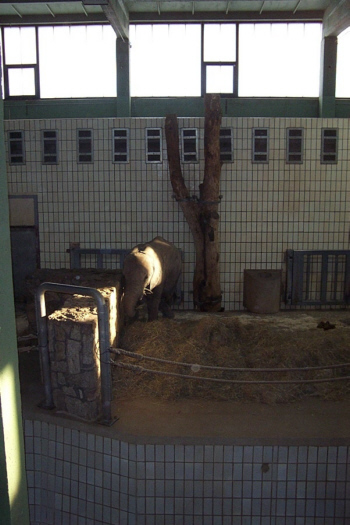 Zunächst wollten uns die Zweibeiner die Elefanten zeigen. Doch am Gehege angekommen, war weit und breit kein Tier zu sehen. Daraufhin sind wir erst einmal weitergelaufen und kamen zur Pferdekoppel. Auch dort war alles leer. Nicht anders erging es uns bei den Kamelen, bei den Nashörnern und bei den Giraffen. Das war vielleicht ägerlich. Ich wollte Alois doch beweisen, daß mein Hals länger ist als der einer Giraffe. Und nun habe ich nicht mal eine Giraffe gesehen. Unsere Frauchen waren nicht gerade erfreut, als sie feststellten, daß am Nachmittag etliche Tiere bereits wieder in ihren Häusern untergebracht werden - und da ist der Zutritt für Hunde verboten. Ich konnte das gar nicht verstehen, wo doch so schönes Wetter draußen war. |