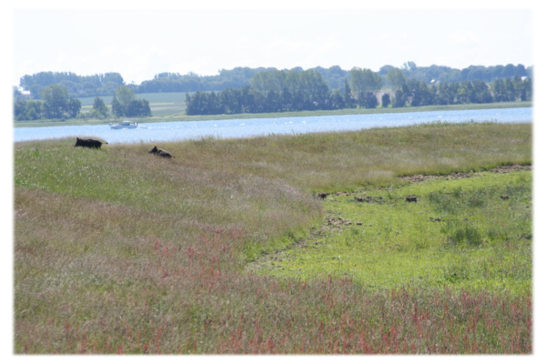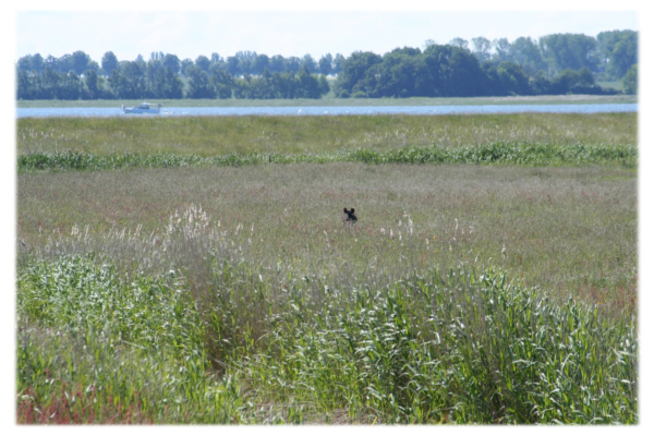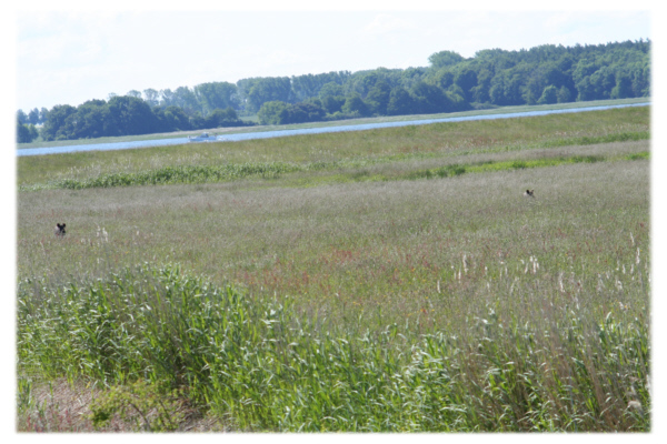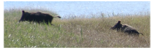 Das erste, was wir am Pramort entdeckten, waren allerdings Wildschweine. Durch das hohe Gras sahen wir zunächst nur zwei ausgewachsene Schweine. Als diese dann die Flucht antraten, folgte Ihnen jedoch ein Dutzend Frischlinge.